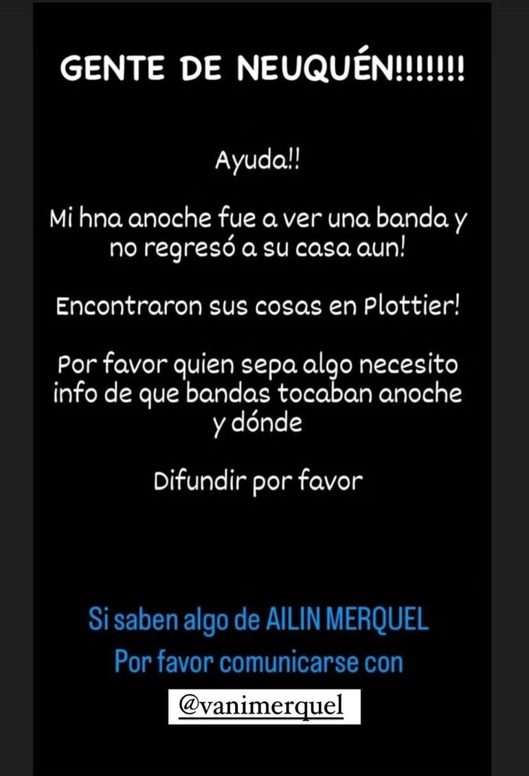 Ante esta situación, sus familiares lanzaron un desesperado de pedido de ayuda a la comunidad para tratar de conseguir algún tipo de información. Se trata de Cintia Ailín Merquel, de 33 años. La última vez que hablaron con ella fue el domingo a las 23 a través de una llamada telefónica. Después de eso, no volvieron a tener contacto.