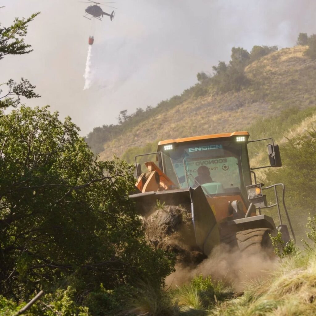 En la cabeza y flanco izquierdo trabajaron brigadistas del Servicio Provincial de Manejo de Fuego y Corfone en el ataque directo con herramientas manuales para la faja y líneas de agua con el apoyo de 2 aviones AT, 1 avión anfibio acuático del Servicio Nacional de Manejo de Fuego y 1 helicóptero del Ejército Nacional para el traslado de personal a diferentes puntos del incendio como para el ataque directo al fuego mediante descargas de agua.