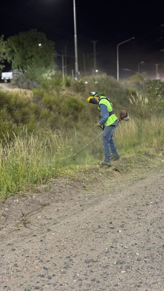 Operativo nocturno: Desmalezan y limpian más de 10 kilómetros sobre Ruta 7
