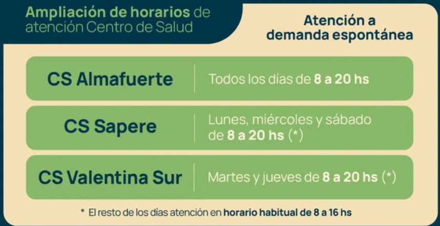 Con el objetivo de ampliar y acercar la atención médica a la población, esta semana comenzó a funcionar la atención a demanda espontánea en tres centros de salud de la capital neuquina: Almafuerte, Sapere y Valentina Sur. Esta estrategia se aplica varios días a la semana, de 8 a 20, y permite facilitar la accesibilidad y evitar la sobrecarga en guardias y hospitales de la ciudad de Neuquén.